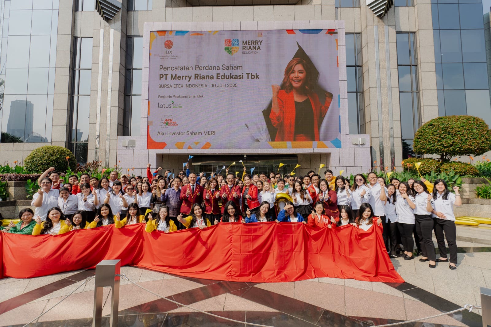 Merry Riana (Founder & Komisaris Utama PT Merry Riana Edukasi Tbk) menyatakan, “Saya memahami dan menghormati keputusan BEI sebagai bagian dari mekanisme pengawasan untuk menjaga stabilitas pasar modal. Saya sangat bersyukur atas antusiasme luar biasa dari masyarakat dan para investor terhadap saham MERI selama beberapa hari terakhir.”