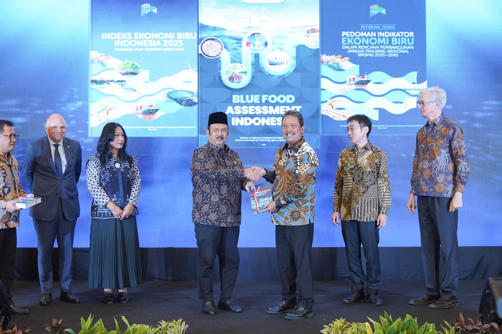 Kementerian PPN/Bappenas bekerja sama dengan Uni Eropa (EU), Economic Research Institute for ASEAN and East Asia (ERIA), Stanford University, Microsave Consulting (MSC), dan mitra pembangunan lainnya merancang Blue Food Assessment (BFA) utamanya untuk mengidentifikasi dan memetakan kondisi pangan akuatik di Indonesia yang berkontribusi dalam menciptakan sistem pangan akuatik dan Indonesia Blue Economy Index (IBEI) untuk mengukur ketercapaian pembangunan ekonomi biru yang lebih efisien, inklusif, tangguh, dan berkelanjutan.