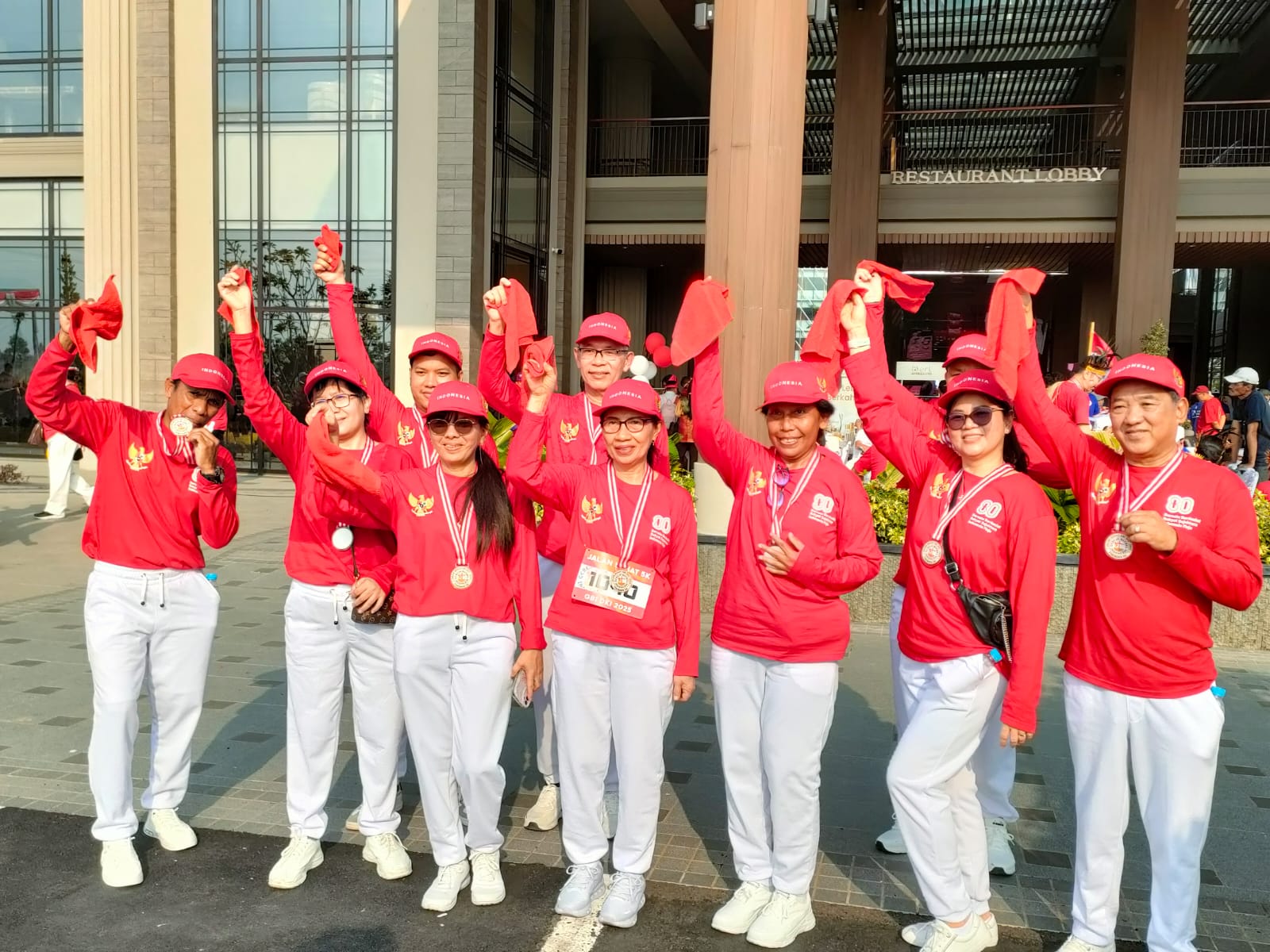 Suasana penuh sukacita ini menegaskan bahwa jalan sehat bukan sekadar ajang olahraga, tetapi juga momentum mempererat tali persaudaraan dan merayakan kemerdekaan dengan semangat kebersamaan.