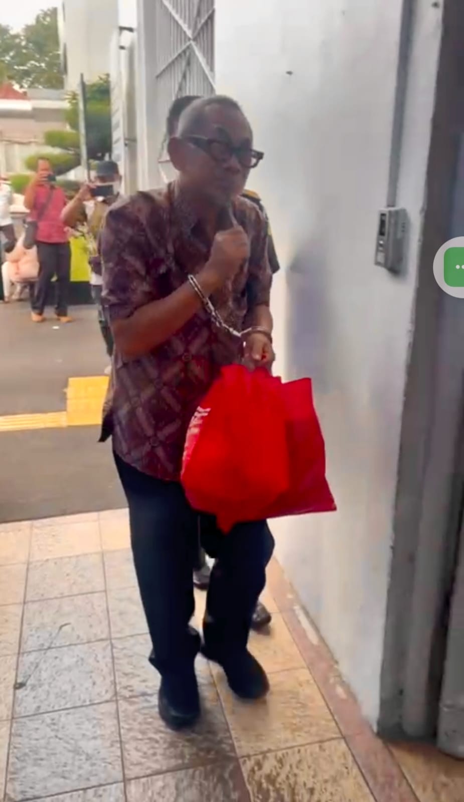 Dengan mengenakan kemeja batik coklat lengan pendek, celana hitam, dan tangan diborgol, sosok akademisi yang dulu dikenal sebagai pengajar hukum itu melangkah pasti menuju pintu gerbang lembaga pemasyarakatan. Ekspresinya datar, sesekali menunduk, seolah menyadari bahwa hari itu menjadi babak baru dalam perjalanan hidupnya — bukan lagi sebagai pendidik, melainkan sebagai warga binaan pemasyarakatan.