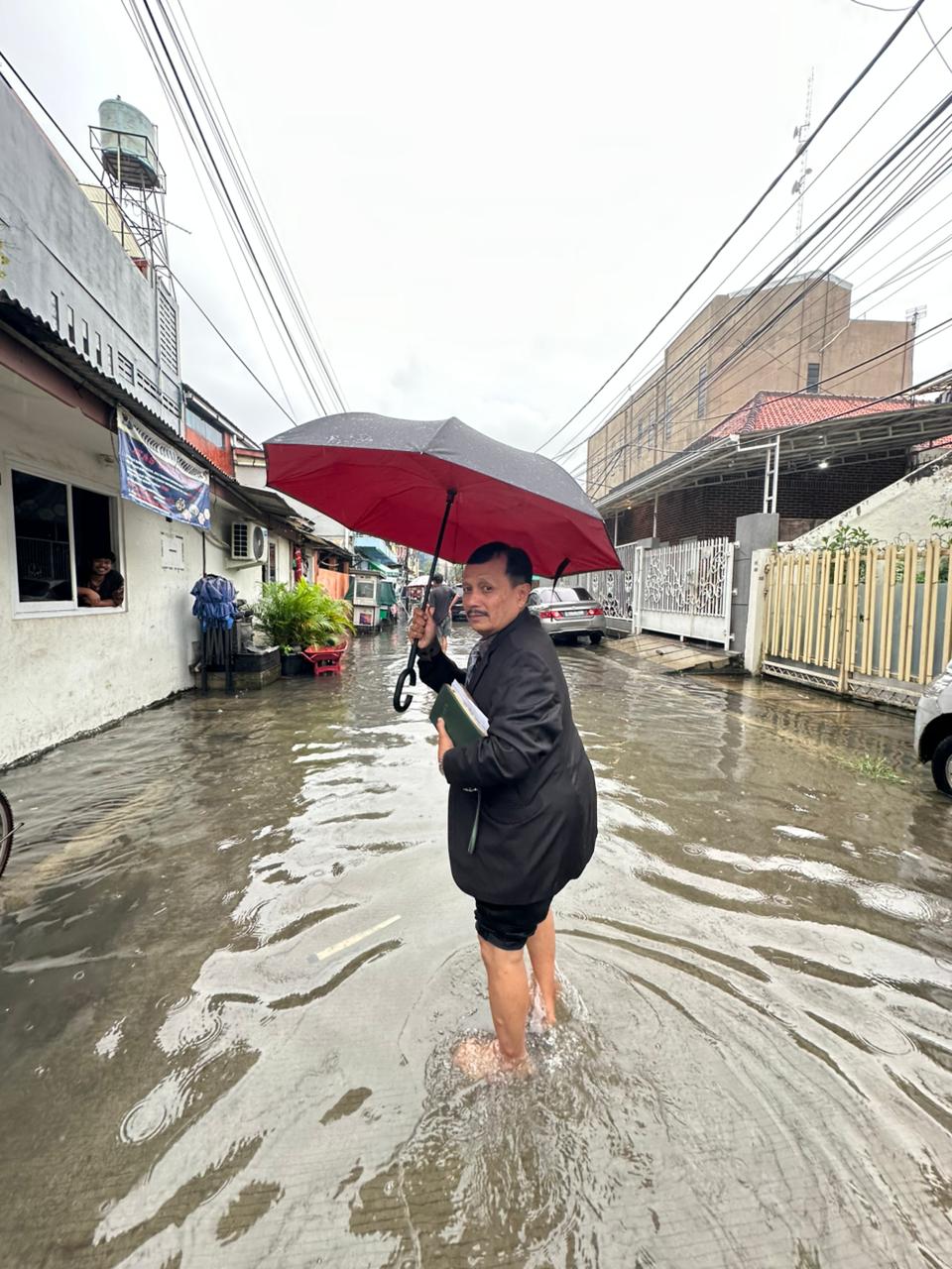 Akses menuju gereja tidak mudah. Sejumlah ruas jalan tergenang, bahkan area sekitar gedung gereja dipenuhi air. Jemaat dan pelayan ibadah terpaksa membuka sepatu serta menggulung celana agar dapat melintasi genangan. Namun kondisi tersebut sama sekali tidak menyurutkan kerinduan umat untuk datang beribadah.